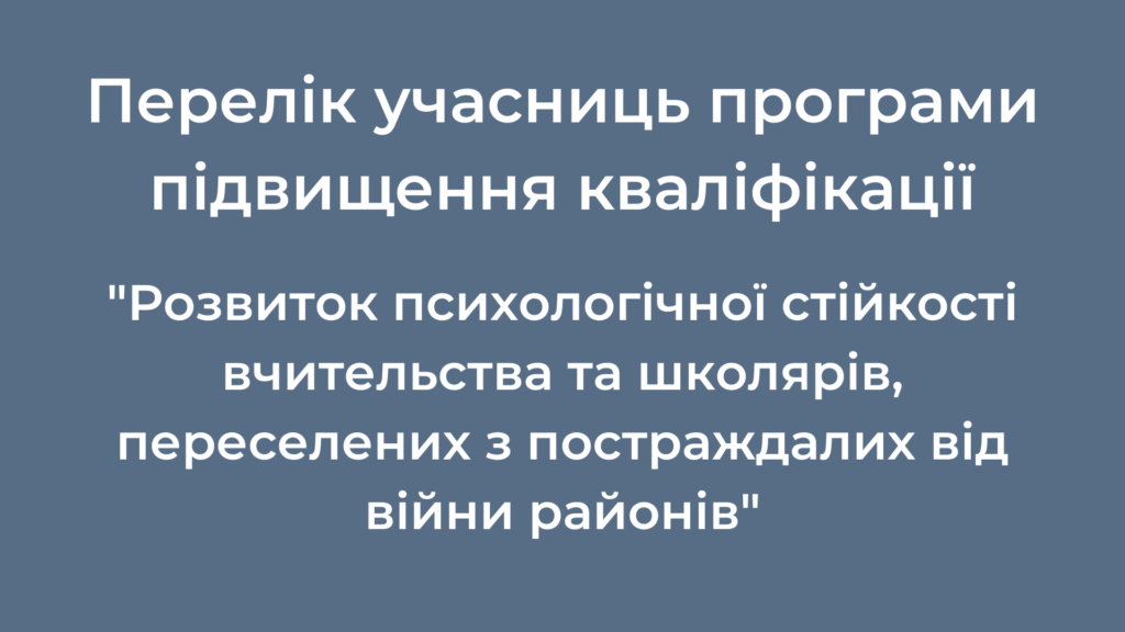 Учасниці програми підвищення кваліфікації педагогічних працівниць з удосконалення навичок психологічної самодопомоги “Розвиток психологічної стійкості вчительства та школярів, переселених з постраждалих від війни районів”