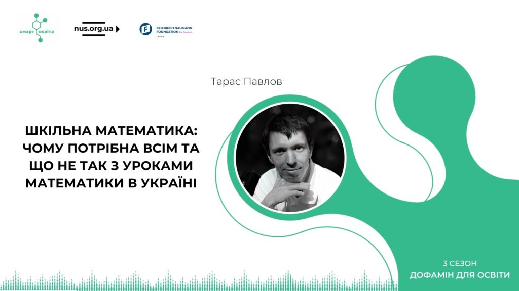 ГО “Смарт освіта” і сайт “Нова українська школа” продовжують третій сезон подкасту “Дофамін для освіти”. У новому епізоді керівниця ГО “Смарт освіта” Галина Титиш говорить із Тарасом Павловим, учителем математики й викладачем Київської школи економіки, про те, чому математика – це наука, потрібна кожному, а також про те, як варто трансформувати зміст математичної освіти в Україні.