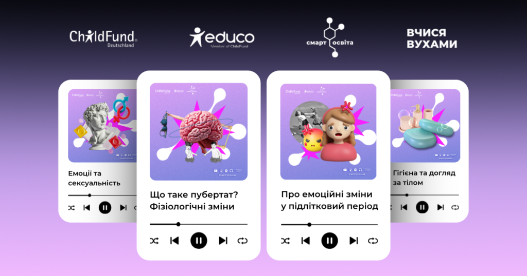 Добірку аудіоуроків «Секс-освіта» від проєкту «Вчися вухами» створює ГО «Смарт освіта» в межах співпраці з ChildFund Deutschland і Educo та фінансування Sternstunden.
